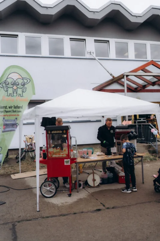 ✅ Rundum-Service: Inklusive Auf- und Abbau, allen Tüten, Bechern und Halmen + Tisch und Zelt